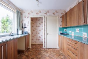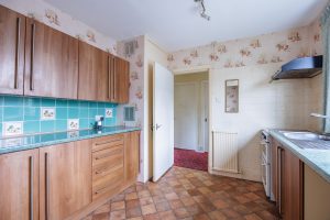 Kitchen: With entry directly into the hallway, with a range of base and wall mounted display units, window to the front of the property, two built in shelved storage cupboards, one housing the gas boiler.