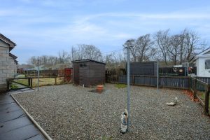 Exterior: The front of the property is stone chips with a paved pathway to the front door, all enclosed by fencing.  The rear of the property is enclosed by fencing, has a paved pathway, stone chips and wooden storage shed.  The side of the property is a patio communal drying area. There is also ample on street parking available for    residents.