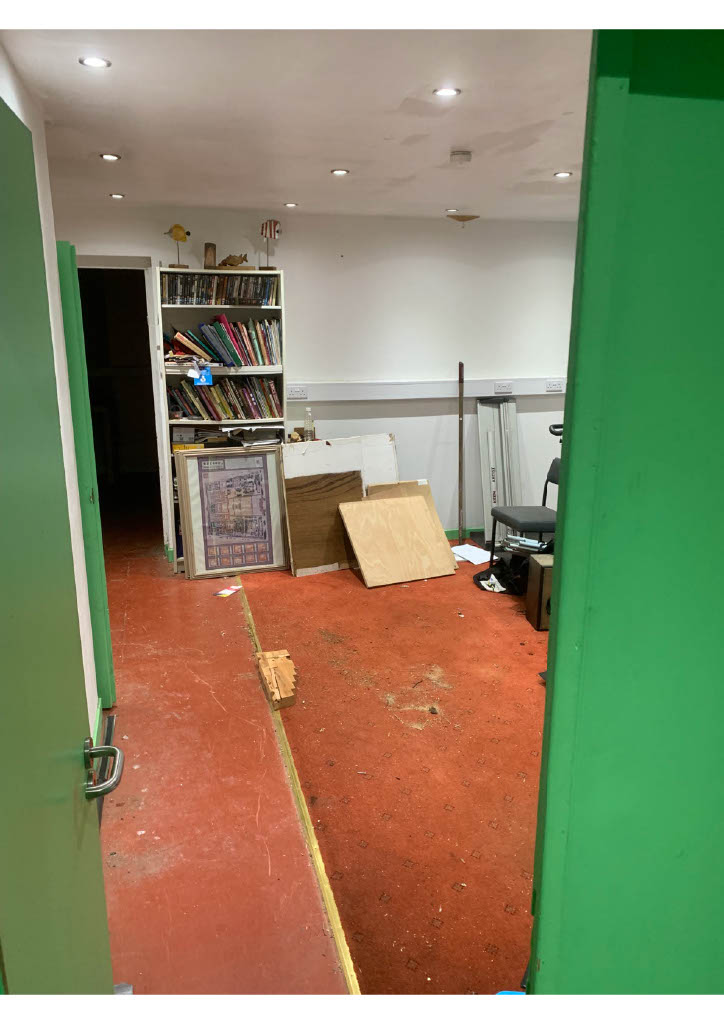 Number 1, The Cross is entered from a small private lane next to the The Lime Tree restaurant and is protected by a keypad and a substantial lock. The property has been used as both a workshop for the local Men’s Shed, they have now moved to a self owned building, and a store for the local development trust.