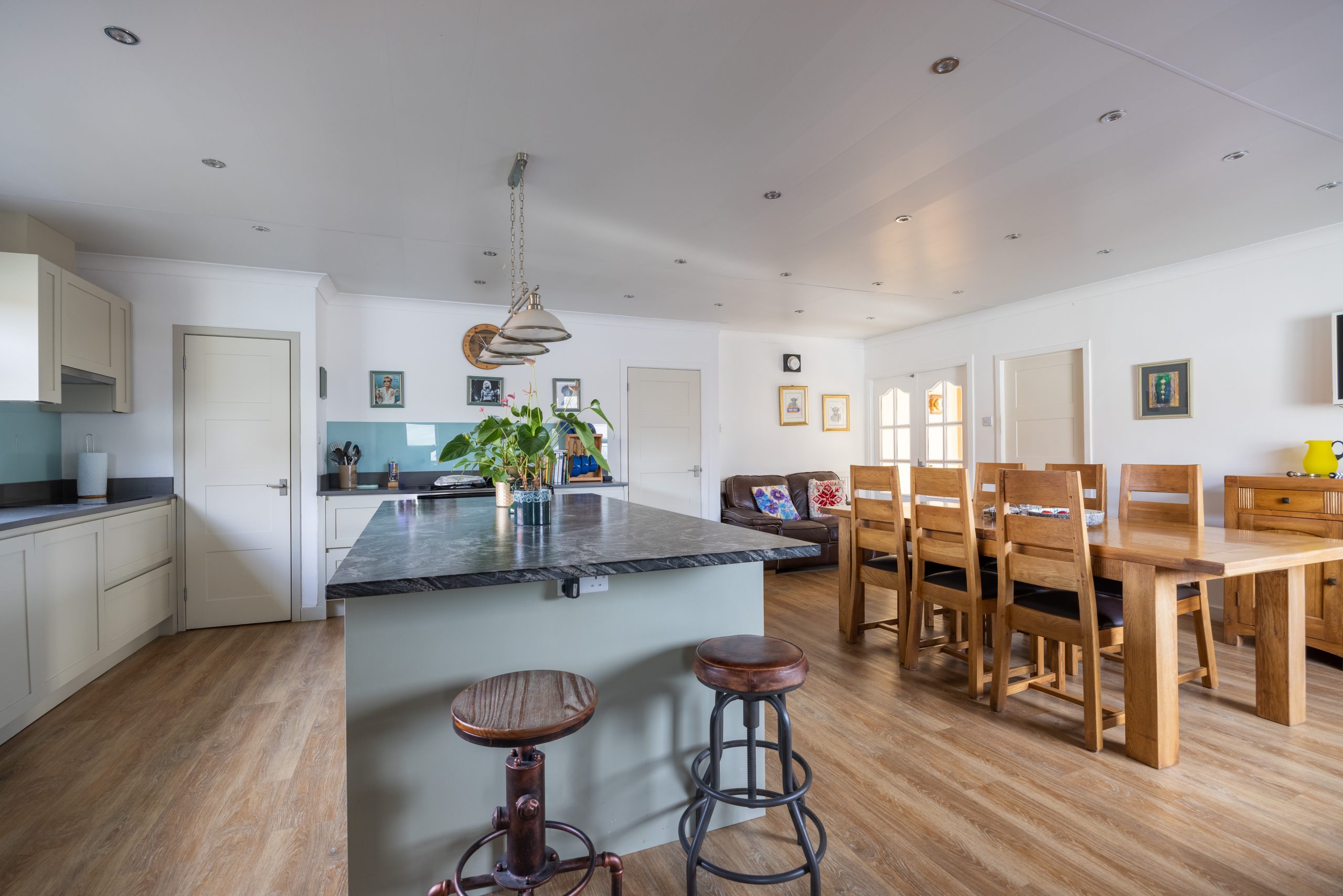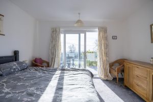 There are three double bedrooms one of which is en-suite. One of the bedrooms has patio doors which open on to the raised veranda at the front. A lovely place to sit and have your morning coffee taking in the calm before the day ahead.